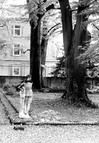 „Bacchus" und "Jüngling mit Ziege“ im Park, „Mädchen mit Katze" und "Mädchen mit Hund“ bei der Treppe.