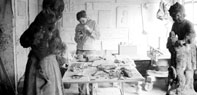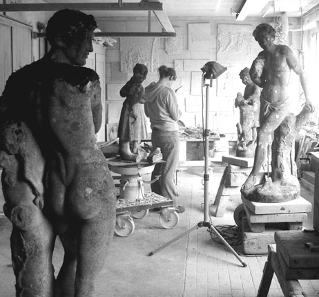 Die Figuren aus einem Park mit Villa in Winterthur (Historismus ca. 1910) werden in unsrerer Werkstatt restauriert.