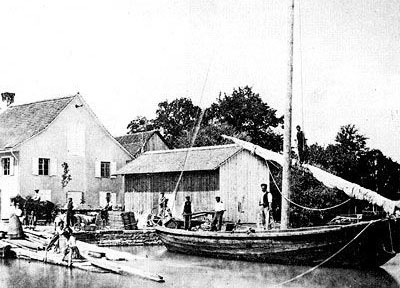 In Steckborn wurden die rohen Steinblöcke am W e r k p l a t z am See, bei Johannes Traber Steinmetzmeister im „Grütli“ (Geschäftsgründung 1864) abgeladen. In der Werkhalle, direkt am See gelegen, wurden die Steine zugehauen, weiterverarbeitet und mit Ross und Wagen in der Umgebung versetzt.
